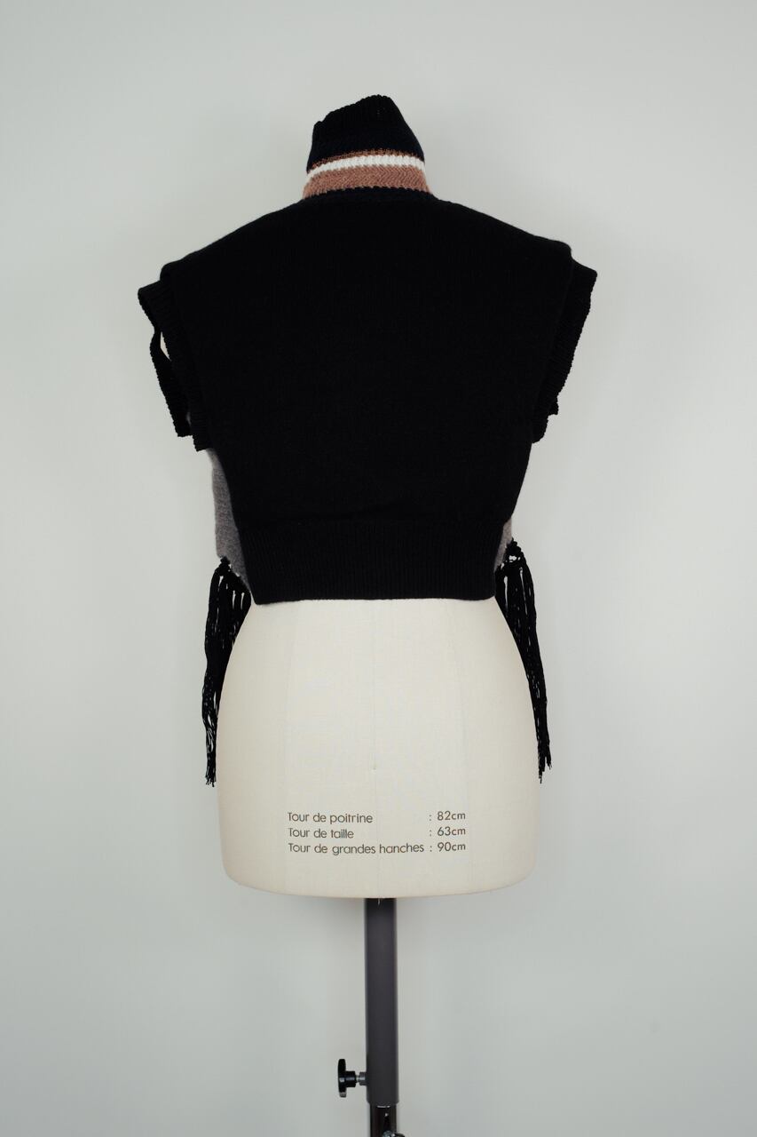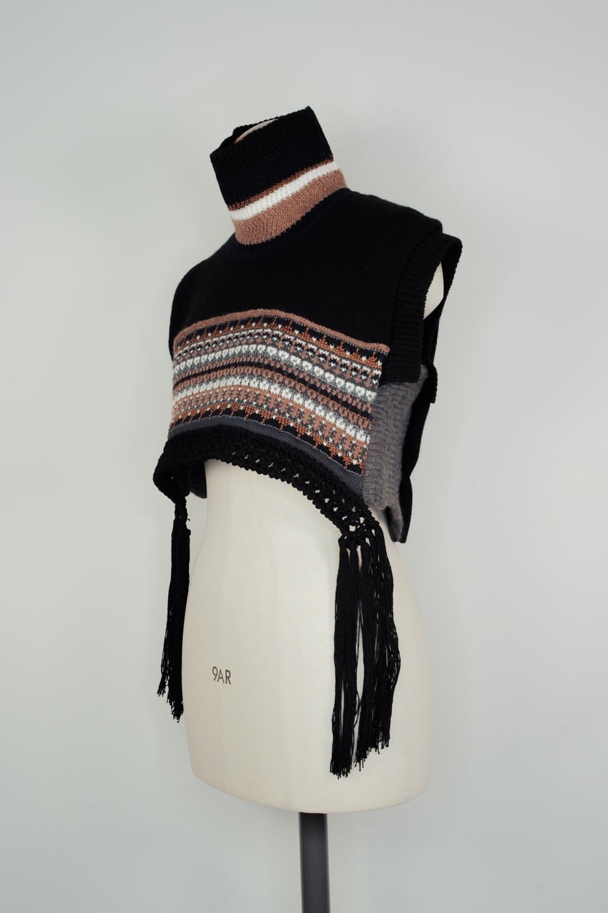 JACQUARD DOCKING VEST / BLACK <LF-1903> 柔らかいラムウールとオリジナルのフェアアイル柄をドッキングしたベスト。 【SIZE】 FREE 着丈45cm 身巾46cm 裄丈80cm 【MATERIAL】 表地/ウール 45%、レーヨン 7%、ナイロン 5%、コットン 18%、アクリル 25%