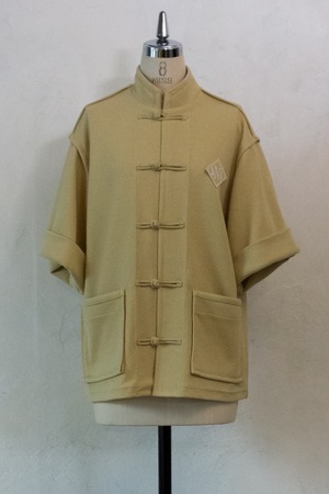 共地でできたチャイナボタンと胸のワッペン刺繍がポイント。